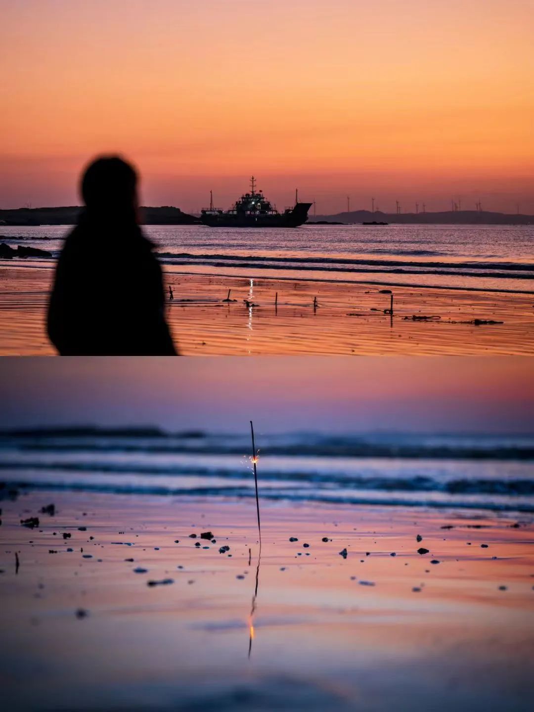 一直坐到傍晚时分,等红日垂落至大海的那头,大片大片霞光洒落下来,如细碎的金箔流淌开来,有渔船披着夕阳归来,像是一幅辉煌绚烂的油画。
