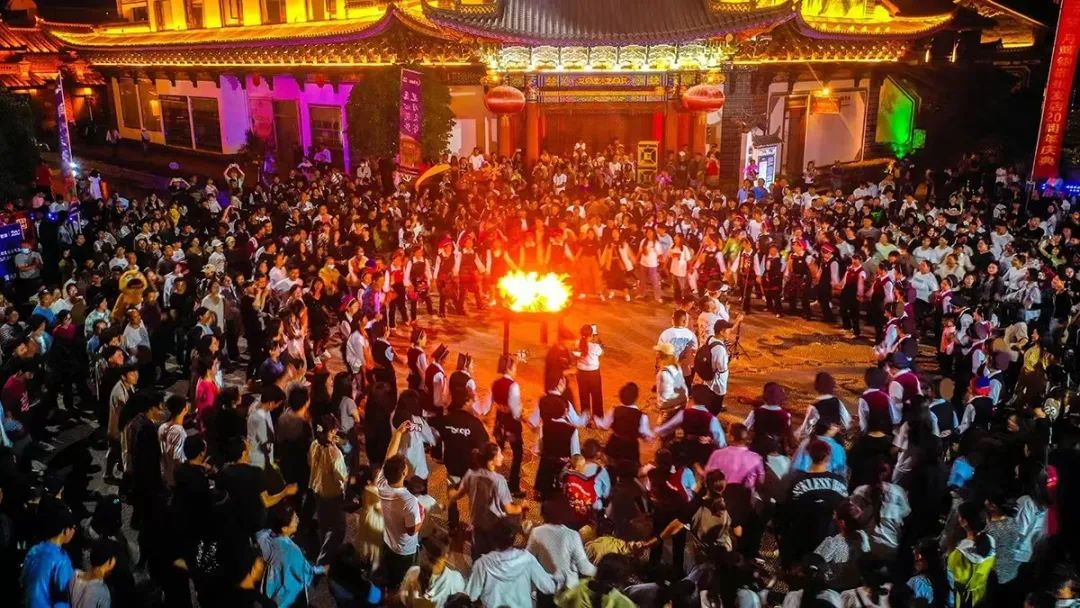 每当夜幕降临,华灯初上,整个小镇流光溢彩,熙熙攘攘的人群穿梭在街头巷尾。每周六晚,香登广场还会举行篝火晚会。还有鹤庆米糕、酥合糖、辛屯凉粉、凉虾及炸烤等各类传统美食,令人垂涎三尺。