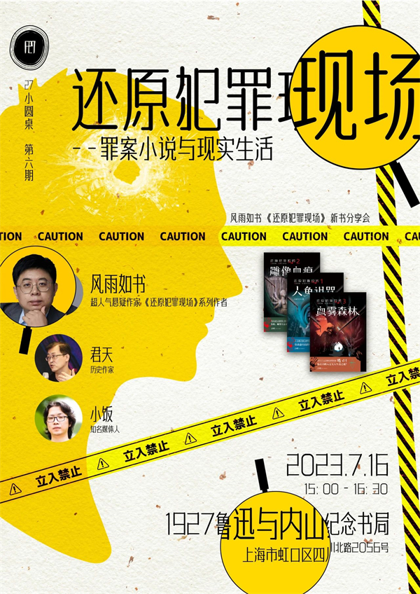 7月16日,超人气悬疑作家风雨如书将携重磅新作来到1927鲁迅与内山纪念书局开展27小圆桌第6期“还原犯罪现场——罪案小说与现实生活”《还原犯罪现场》新书分享会活动。作家将为读者们分享新书背后的独家创作故事,悬疑迷们不要错过!