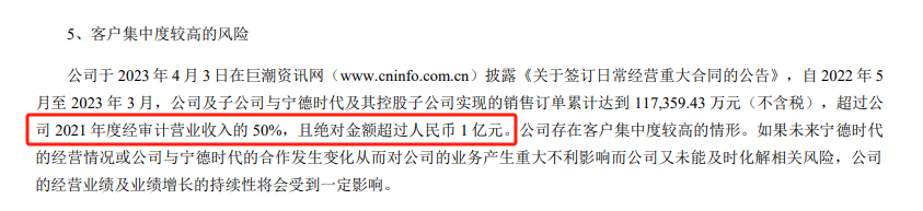 宁德时代是其核心客户之一。2022年5月至2023年3月,中一科技及子公司与宁德时代及其控股子公司实现的销售订单累计达到11.74亿元,已然超过公司2021年度经审计营业收入的50%。