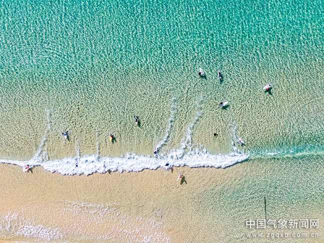 在万宁日月湾冲浪的人们 万宁市气象局供图