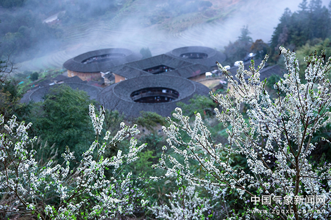 南靖土楼景区由田螺坑土楼群、河坑土楼民俗文化区和云水谣古镇组成,景区内自然景观多样。形状各异的土楼获得“土楼是世界上独一无二、神话般的山区建筑模式”等评语。田螺坑土楼群依照“明堂五室”进行规划布局,是独具特色的建筑形体组成的经典之作;河坑土楼群由7座方形土楼和7座圆形土楼组成,有“仙山楼阁、北斗七星”之美誉。来到云水谣古镇,从古镇到塔下村形成“一水依两岸”的狭长地带,水色清明澄碧,沿溪两岸有42座土楼被青山秀水环抱。此外,南靖境内还拥有南华岩、科岭红色教育基地等特色旅游景点,人文旅游资源丰富。近年来,气象部门点对点直通式开展景区气象服务,深入挖掘气候资源,打造气候品牌,以“气象+”赋能景区文旅产业发展。