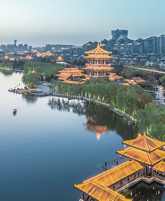 从大雁塔到大唐芙蓉园和大唐不夜城步行10分钟—15分钟,可以根据自己的兴趣选择。两处都是夜游好去处,十分热闹。大唐芙蓉园是我国第一个全方位展示盛唐风貌的大型皇家园林式文化主题公园,紫云楼、仕女馆、杏园、芳林苑等仿古建筑,让人感觉仿佛穿越到了唐朝,身边穿唐装游园的游客不少,景与人,都美得好似“世外桃源”,拍照打卡的游客,忙得不亦乐乎。如果想要体验更多烟火气,那大唐不夜城的三步一景、五步一闹无疑是最合适的选择。每到黄昏,四面八方的人流便向大唐不夜城汇聚,大家一般乘坐地铁而来,从地铁大雁塔站东南口出站,从北往南参观。看完大雁塔北广场的音乐喷泉表演,继续往前800米,就是大唐不夜城步行街北入口,经过古诗词街时,一步一诗词,成为独属于长安的浪漫。