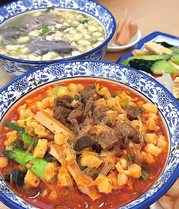 第一样是羊肉泡馍。黄土高原非常适合种植谷子、小麦,而且品质优良,这也是山西面和陕西馍好吃的底气。牛、羊肉炒馍从西周传至现在已经有两千多年历史了,精细制作,味道咸鲜,暖胃耐饥。北宋诗人苏轼盛赞“秦烹惟羊羹,陇馔有熊腊”,它令古代人垂涎,亦令今天的中外游客争先品尝,多次用来接待外国贵宾,被称赞是“中国的饮食文明”。现在,羊肉泡馍是陕西名吃的“总代表”。所有赞誉背后,是烙馍、煮肉、切肉、煮馍等工艺技术的严格把控,是老祖宗对美食那份细心和重视的传承,这何尝不是传统文化魅力生生不息的延续。