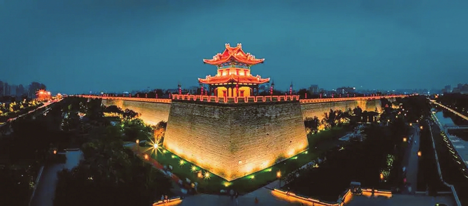 西安城墙有明代城墙和唐代城墙,游客打卡的一般都是钟楼和鼓楼所处的明城墙,唐城墙大部分损坏,目前仅存遗址。西安城墙同钟楼鼓楼一样,也是中国现存规模大、完整度高的古代城垣之一。手机上的“上帝视角”看古建,总是少了几分亲临现场的岁月感,但是当你站在城墙脚下时,则有一种翻阅天地间无字史书的感觉。西安城墙高12米左右,长乐、永宁、安定、玉祥、和平、朝阳、文昌、朱雀等寄托着不同时期美好意愿的18座城门巍峨壮观,体现着华夏文明在千年间的传承,不少外国游客也爱在城墙周围骑行逗留。