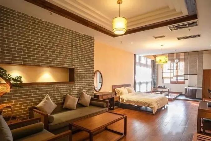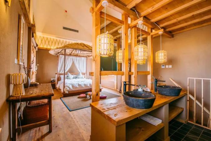 原舍概念来源于景区名称“周原京都”及景区所在地周原,整体设计融合周文化元素风格,营造静谧古朴氛围爸妈在这里可以带孩子们体验,原汁原味的周代起居方式。温暖的灯下,是一处小而温馨的会客、议事场所。房间采用很有古味的原木风格,每一个角落都很适合拍照。