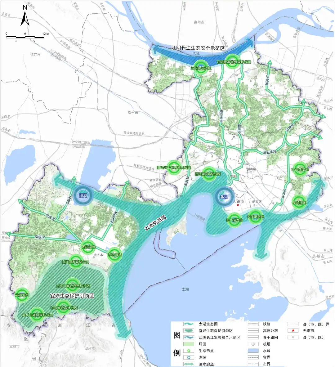 在夯实生态基底方面,《规划》提出要突出生态优先,认真落实长江经济带发展国家战略,深入推进长江大保护和太湖综合治理,着力构建“一圈两区、河荡纵横、圩田环绕、城绿相融”的市域生态安全保护格局,塑造山水相依、湖美水清的生态空间;建设长江生态安全示范区,加强长江沿线水源保护、污染防治、生态修复和岸线优化,明确空间管控要求;大力推进太湖跨流域综合治理,持续改善太湖水环境质量,规划建设湖滨湿地带,更高质量确保饮用水安全,提高流域防洪保安与水资源配置能力。