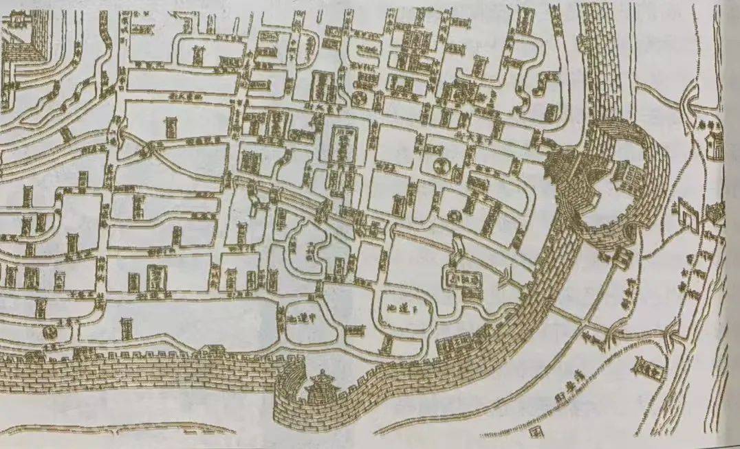 《四川省城街道图》(清光绪二十年制)从皇城右下角始,东大街一直延伸到东门城门(翻拍自《锦江记忆》,赖立 供图)