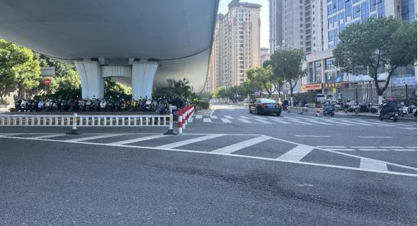 ②在桥下增加硬质警示柱,使得机动车无法进入桥下渠化岛区域,进行违规停车,仅非机动车及行人可以通行该区域。
