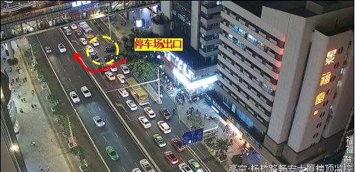 在东百商场停车场出口设置实线和抓拍监控,禁止停车场汇入车辆斜插进入左转车道,保障通行秩序和效率。