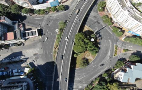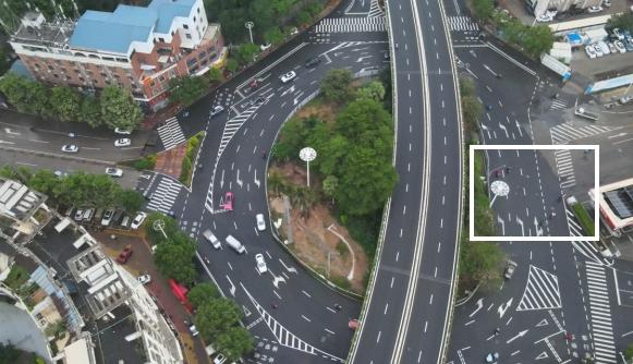 漳华路-坂仔顶跨线桥路口为无信号灯控制的环岛路口,是芗城北部出城口之一。路口交通组织方式为无信号灯控制的环岛组织,路口整体车流量较小,但非机动车通行需求较大。
