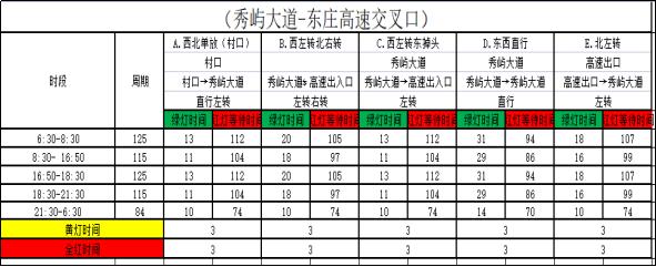 对该路口车流量研判分析进行优化设计,将原有全天时段仅有三个相位的运行方案设计为五相位增加全红时间保障行车安全,并且重新整理时段分别是早、平、午高峰、晚高、夜间,降低路口空放时间、提高绿灯使用效率。