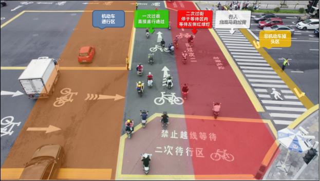 创新优化设置“飞行骑”通行渠化 规范非机动车通行秩序