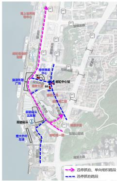 新增地铁换乘中心,增设风雨连廊,强化轨道与出租车、网约车及慢行等交通方式的换乘衔接。结合客流需求走廊,优化公交线路,提供片区微循环公交、旅游专线公交,构建多层次公交网络,满足多方面公交需求。