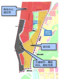 二是交通类型复杂多样。片区含交通枢纽、商业办公、酒店、居住等多个主要功能区,产生的各种交通流线,如人流、公交车、大巴车、出租车、网约车及私家车等相互交织影响。