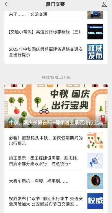 通过厦门交警公众号及小程序,发布景点实时客流、公交线路调整、片区周边公共停车场、路况及交通管制等信息,引导市民合理选择出行路径及方式。