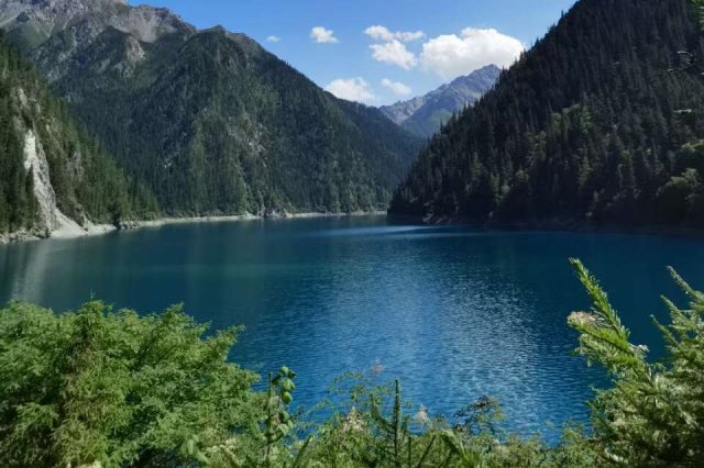 长海,海拔3101米,总长约4350米,宽300米,深90米。平面呈S型,属冰川堰塞湖、淡水湖,是九寨沟海拔最高、湖水最深,面积最大的海子。长海水面呈墨蓝色,水源来自于高山融雪,令人奇怪的是,长海四周都没有出水口,但夏秋雨季水不溢堤,冬春久旱也不干涸,因此九寨沟当地人称之为装不满,漏不干的宝葫芦。长海旁边的山峰终年积雪,四周森林珠翠,站在长海观台上看去,蓝天白云,皑皑峰雪尽收眼底,感觉山和天互相连接在一起,没有距离,这也是长海的一大景观。诗赋:映日雪山苍云横,接天古树碧波开。 【 详细>>】