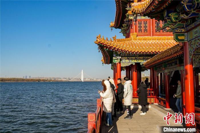 虽然寒风凛冽,但仍不时有游人登临石舫。一位老者说:“早就听说修建了汾河晚渡的景点,但一直没有机会参观。从这里看太原西山,从北齐到隋唐,再到宋、明、清等时期的人文古建遍布。”