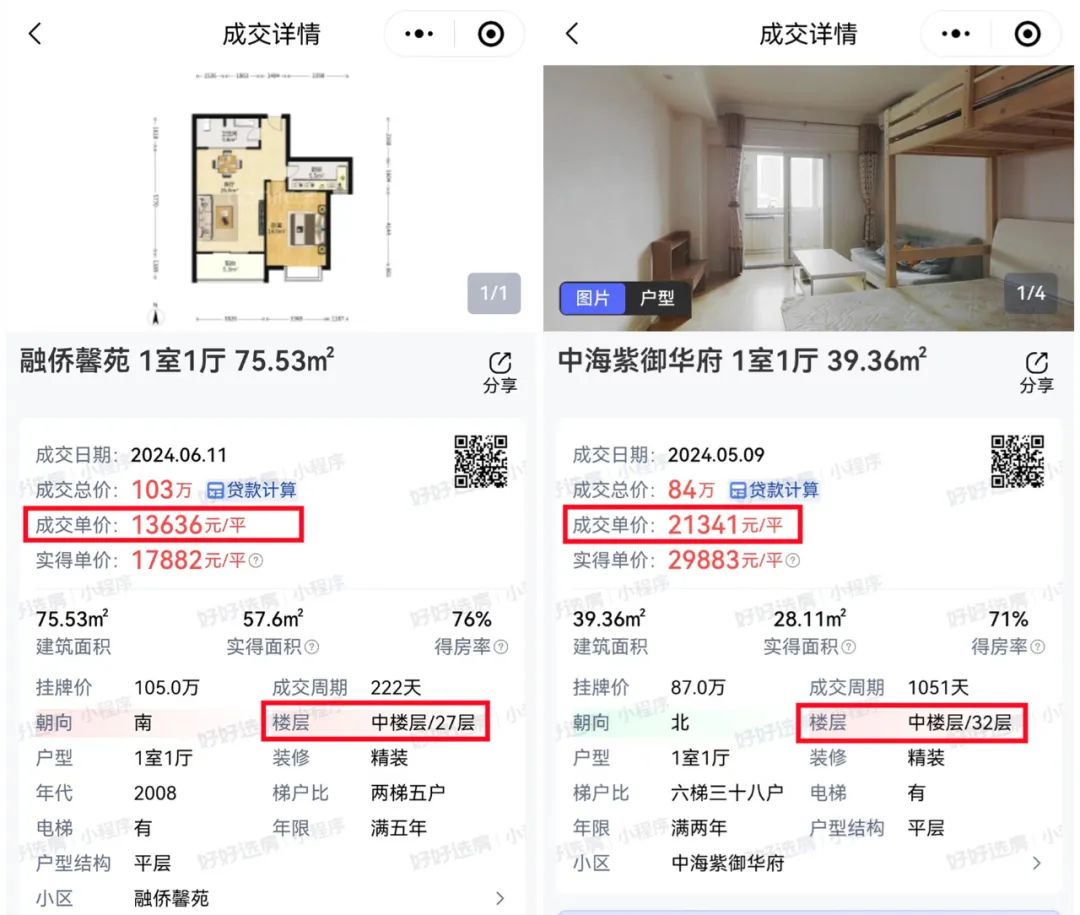 还有融桥馨苑,旁边就是西工大附属小学融侨分校,前期顶着学校名头、区位优势,价格一路高涨,在2021年高峰期时,成交价已超2万/?,最高达2.6万/?,近期部分房源的成交价仅有1.3万+/?。
