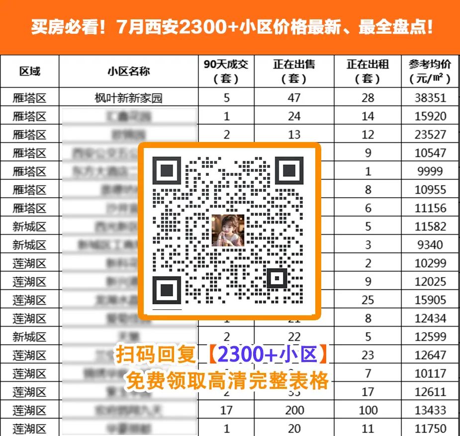 房博士整理出7月西安2300+小区最新价格情况,仅供买房人参考,需要的网友可以扫码领取!