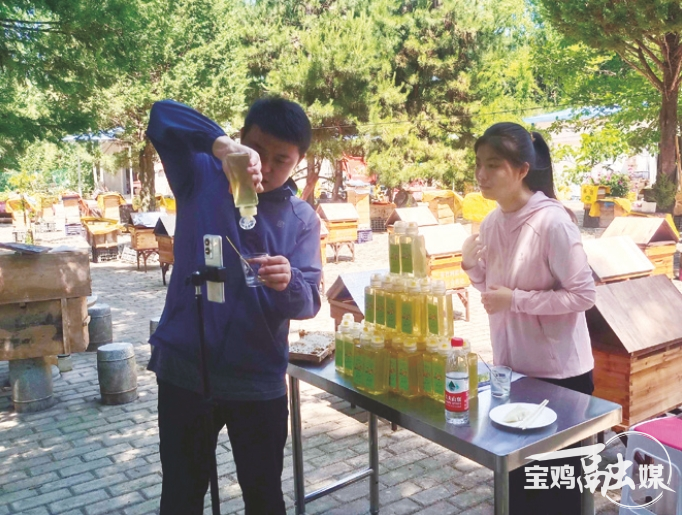千阳县高崖镇地处大山腹地,这里生态环境优越,因此镇干部也一直在尝试探索通过网络的形式来助农增收。“00后”干部景嘉丽来到镇上上班后,第一次负责的工作就是一场网络直播。直播间就设在普社村的蜂蜜产业园,旁边则是密密麻麻的蜂箱,背景是大山、蓝天、白云。