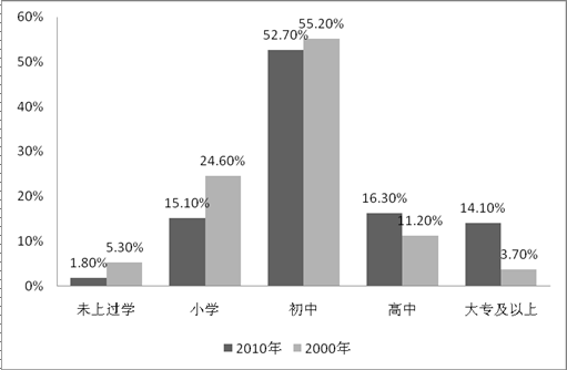 注:2005年是抽样调查推算数据,2000、2010年是普查数据。