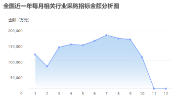 通过数据统计分析,按月度提供全国近一年的采购中标金额的变化趋势分布情况。您可以通过分析结果合理的安排自己的投标活动。