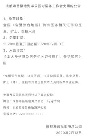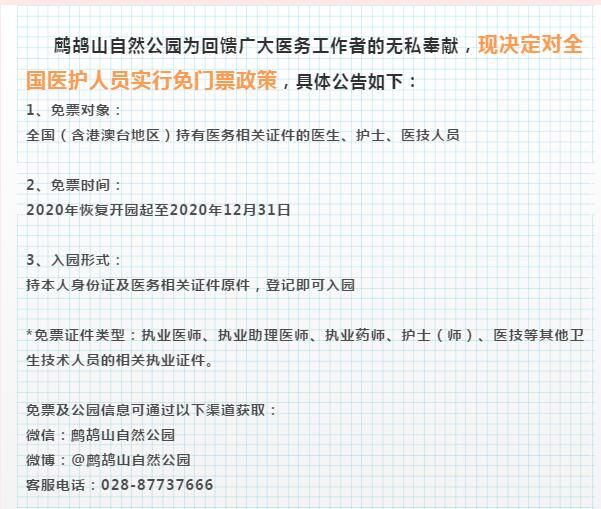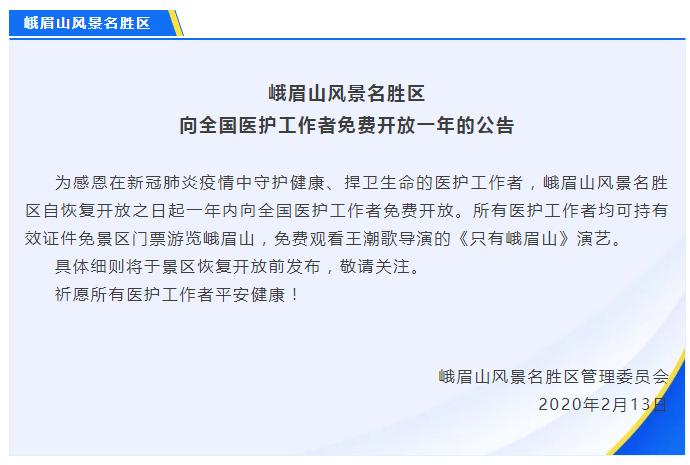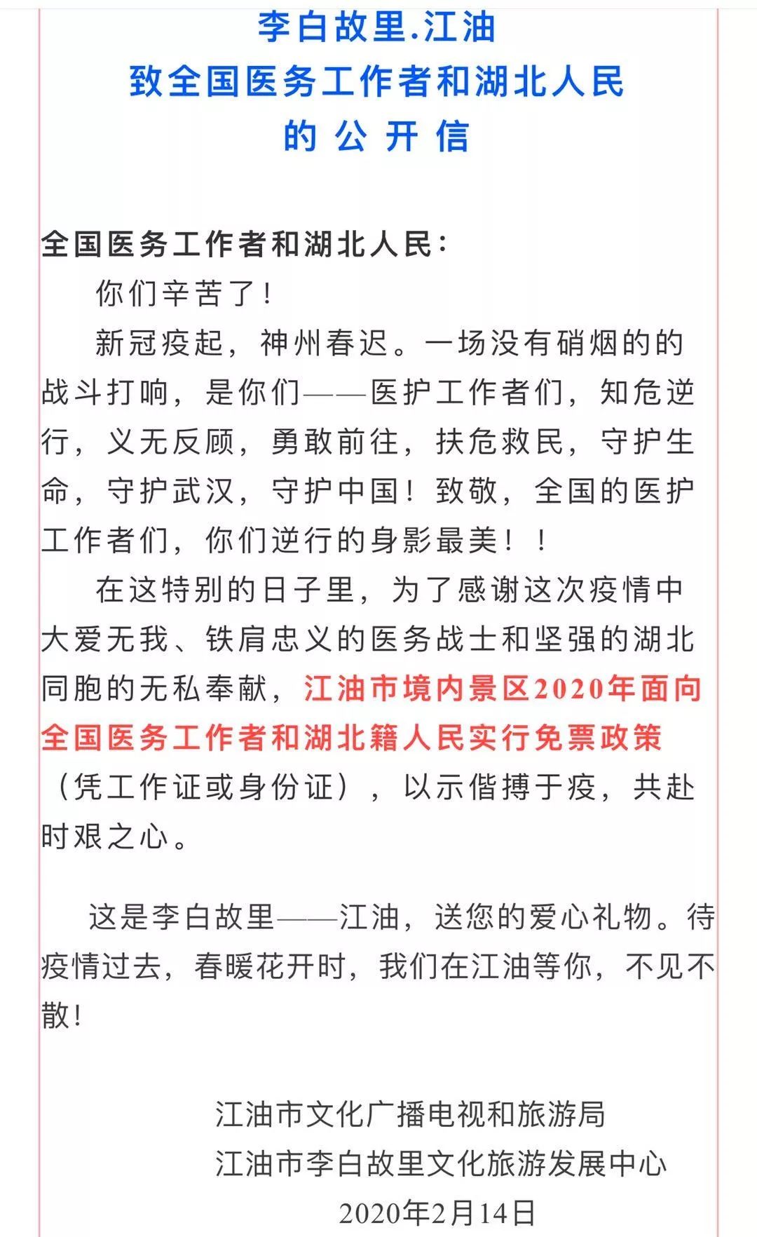 2020年面向全国医务工作者和湖北籍人民实行免票政策