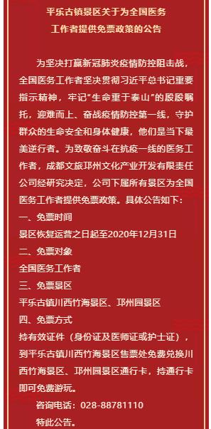 公告显示,成都平乐古镇川西竹海景区、邛州园景区