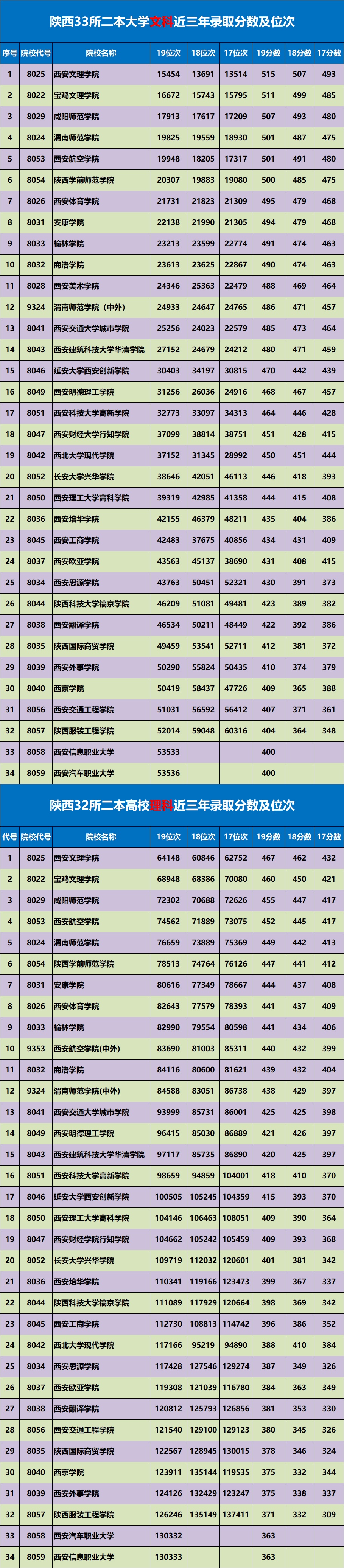 师资力量强大的高校有更好的教学潜力,考生和家长不要完全以录取位次最低来认定学校的好坏(西安文理学院是因为在西安的原因,竞争激烈一些,录取分数线高于宝鸡文理学院,但实力上宝鸡文理学院更强)。