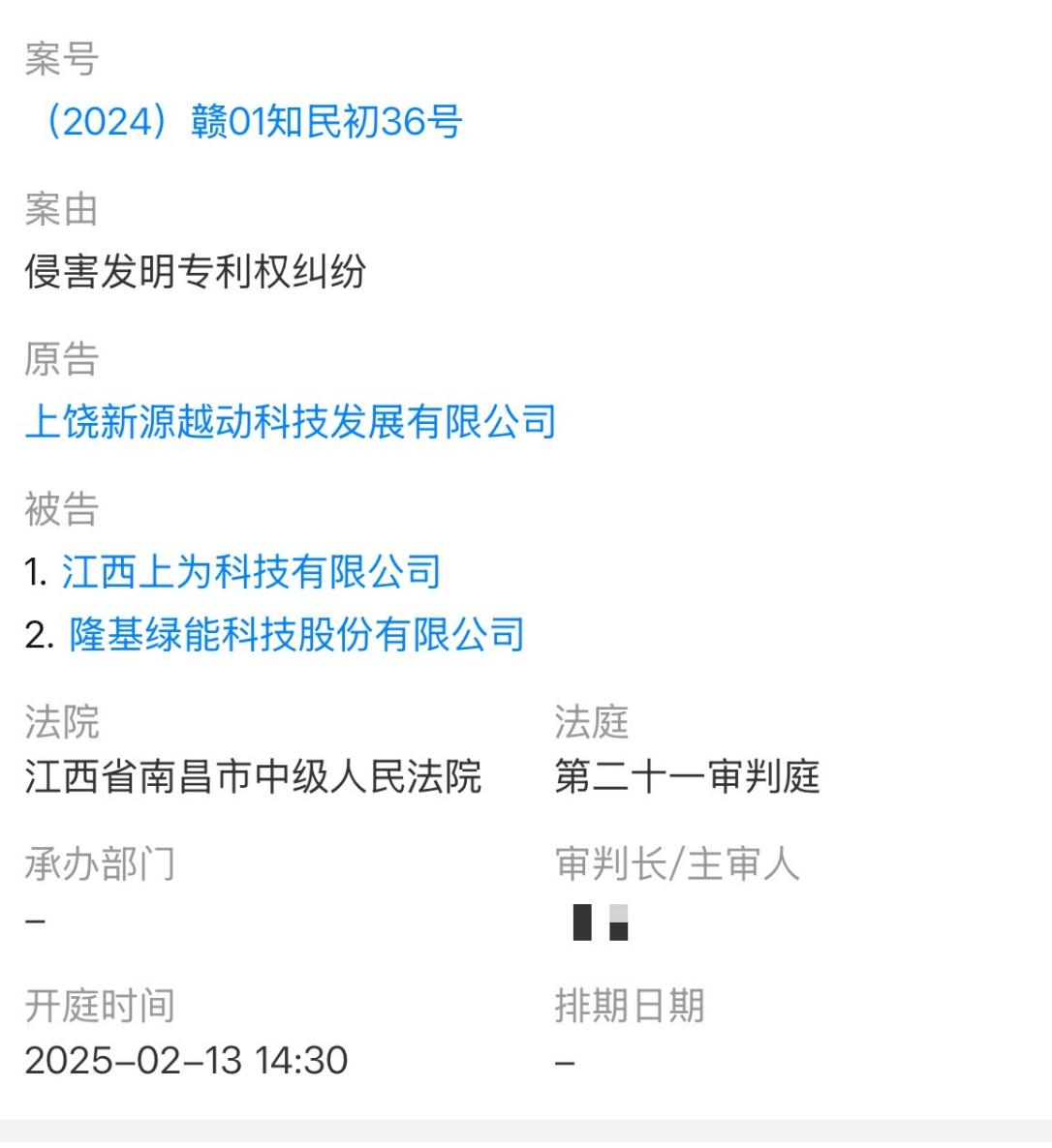 2025年1月3日,晶科能源以侵害相关发明专利权为由,向江西省南昌中院起诉隆基绿能,要求后者停止侵权并赔偿经济损失,就此拉开了年度专利大战的序幕。