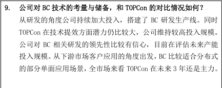 晶科能源则在投资者活动中透露,“从研发的角度公司将持续加大投入,搭建了BC研发生产线。”“BC技术更适用于单面应用场景,可作为分支技术路线布局”