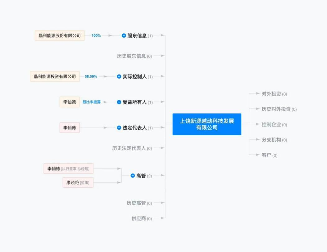 原告主体是晶科能源全资子公司上饶新源越动科技发展有限公司(简称“上饶新源越动”),其前身为“上饶市晶科绿能科技发展有限公司”,成立于2022年7月,法定代表人为晶科能源董事长李仙德。