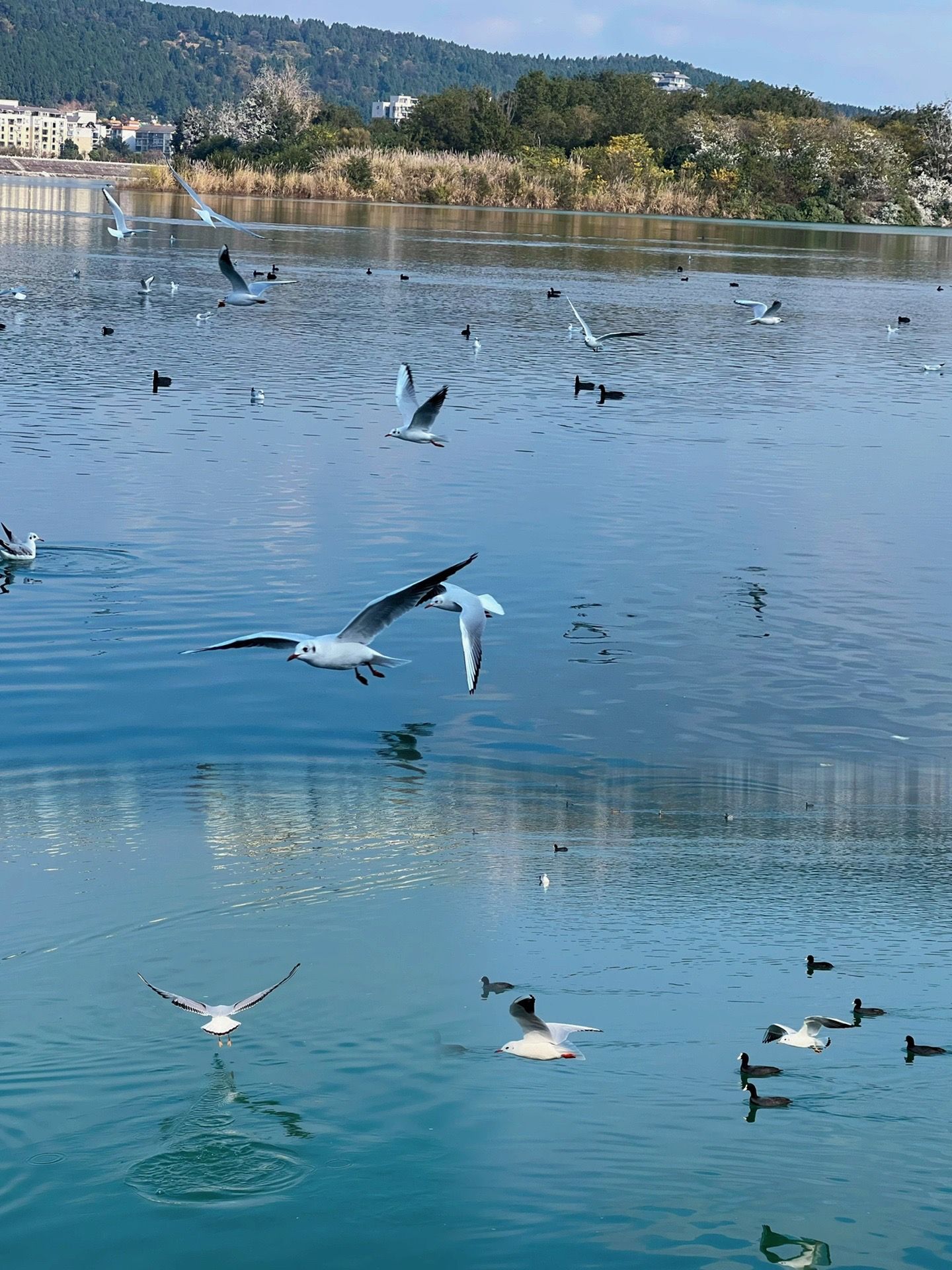 海鸥野鸭子选个天气好的时间去,拍照很出片,拍照的机位也很多,可以坐船,也可以岸边拍照,沿着涪江两岸也可以city walk,但是不建议投喂,