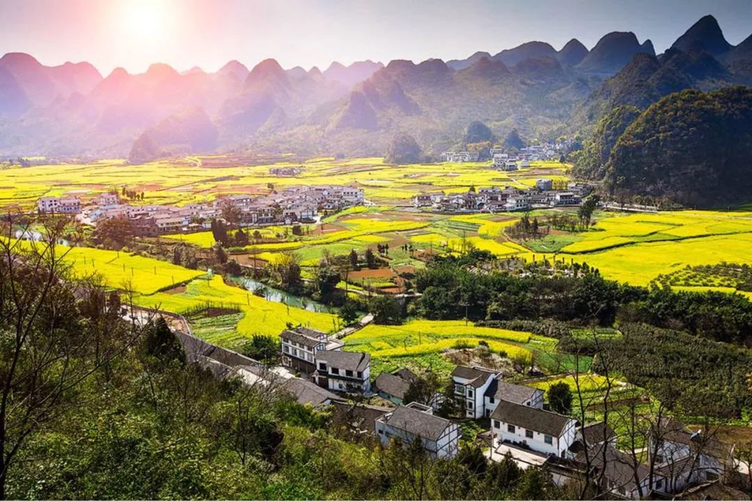 每年的冬末春初,万峰林大片的油菜花就在温暖的气温里摇曳起来。目之所及一片金黄,增添了乡间田园缤纷的色彩。