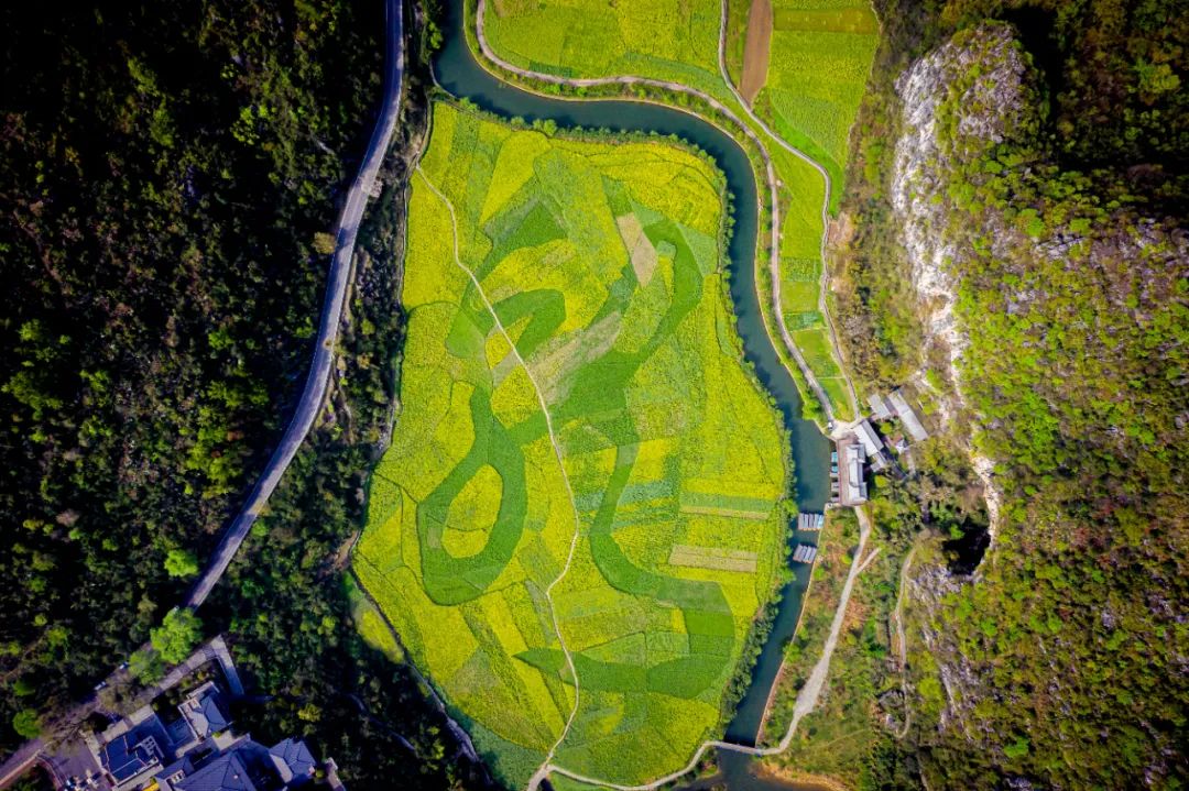 每逢二三月份,龙宫景区龙字田的油菜花开得如火如荼,金黄翠绿的花海随风掀起层层“波浪”。置身龙字田或观景台登高远望,盛开的油菜花在龙字田里组成了世界最大单体汉字,与气势非凡的龙宫交相呼应,一副绝美的龙字画卷就这么生动的展现在眼前,震撼人心。
