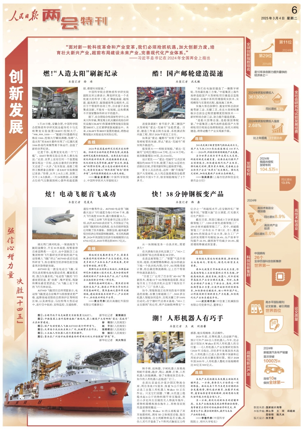 300兆瓦级F级重型燃气轮机成功点火,国产大飞机C919承运旅客超过100万人次……2024年,科技创新持续赋能产业发展。