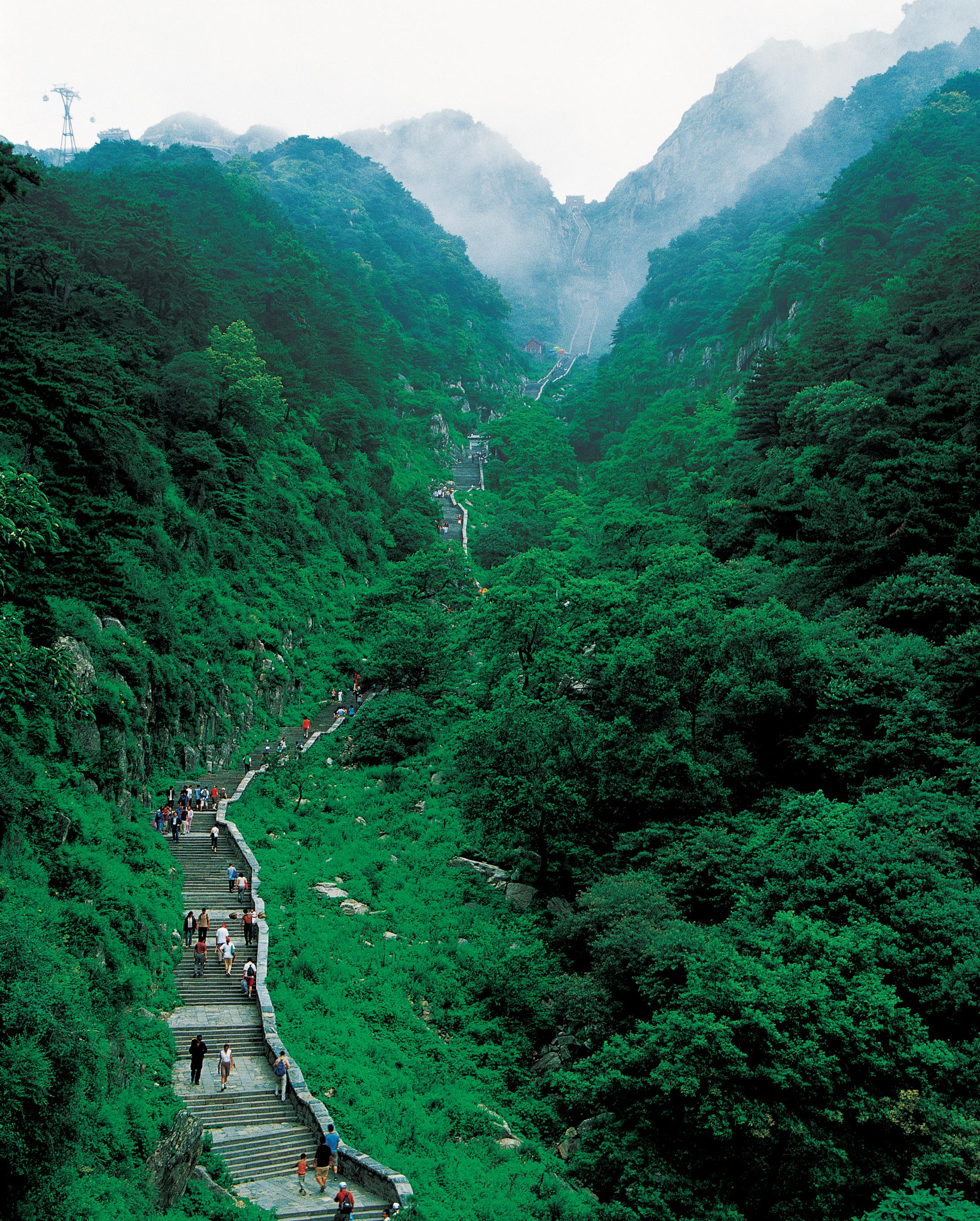 中天门至泰山之巅的最后一段路程,是泰山整个景区精华中的精华,其磅礴宏伟的气势、雄奇美丽的景色、年代久远的遗迹,会给您带来难以形容的心灵震撼!但是如果您时间有限,也可在徒步到达中天门后,换乘索道直达岱顶,可谓“一步登天”,七分钟直达岱顶。