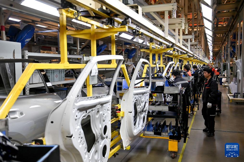 2月26日,工作人员在吉利汽车宝鸡制造基地总装厂生产线上作业。