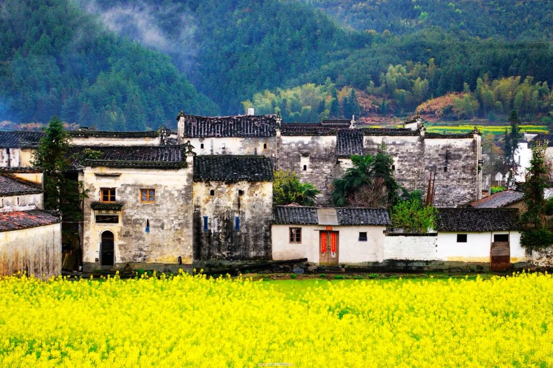 思溪延村,被称为徽州儒商第一村,有着如诗如画的田园风光,可以看到充满历史感的徽派建筑,白墙黑瓦掩映在浓郁的油菜花丛中,溪流两岸一片黄澄澄的花田,与小桥流水人家交相辉映,在清晨的烟雾缭绕中,美轮美奂!