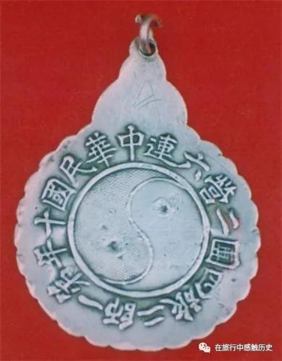 “银券丹书”正面是中华民族传统的宫灯图案,上铸:沭邑、文明、八五、市市、恭颂10个字;反面是太极图案,上铸:中华民国十年第一师二旅四团二营六连17个字。中华民国十年,即1921年,孙中山1912年就任的时候怎么会佩戴1921年的东西呢?