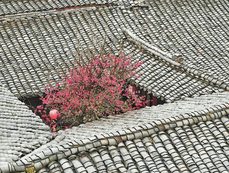 2月24日,阆中古城的院落里,海棠在雨中格外娇艳。梁德 摄(C视觉)