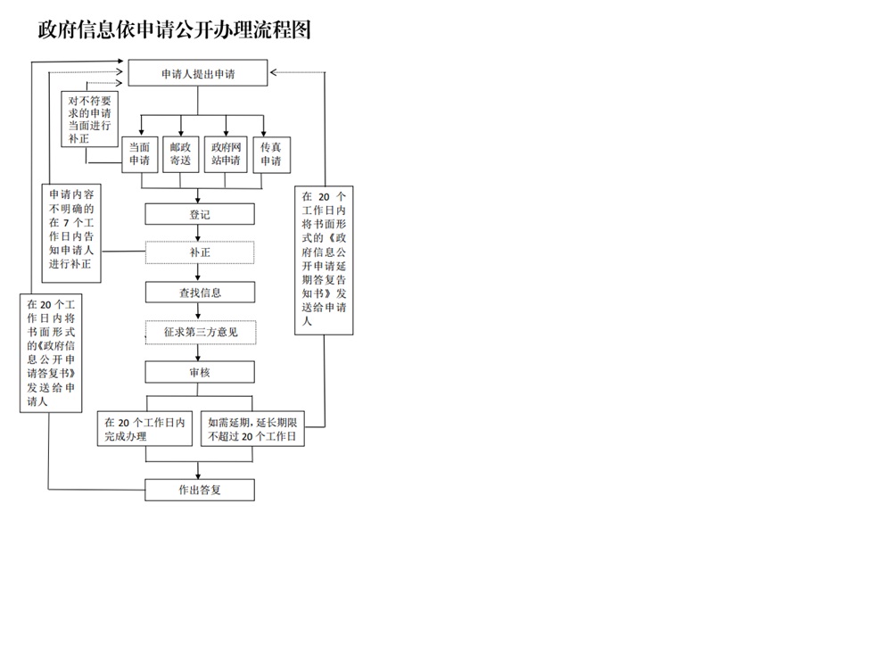 本机关处理政府信息公开申请的流程可以参见流程图: