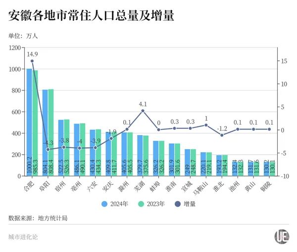 随着安徽省2024年人口数据出炉,合肥以14.9万增量撞线千万常住人口,较宁波、温州、南京、徐州等市先一步完成千万人口目标。