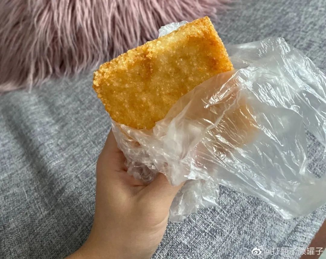 清甜软糯的米饭饼,底面金黄,略甜中带点酸,趁着热气咬一口,淡淡的米香弥漫在舌间。
