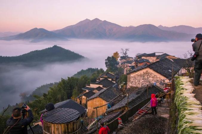 安徽休宁的「木梨硔」,坐落在半山腰上,藏在雾气和云朵里,又被称为“山脊上的天空之城”,木梨硔一直是写生的圣地,白日可观云海,夜晚可观漫天星辰。