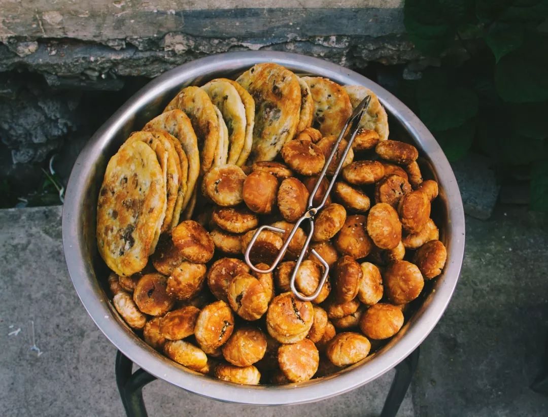还有徽州的雨巷里,小摊上卖蟹壳黄的烧饼,还有煎毛豆腐的,一碗热乎乎鲜美的小馄饨温暖了江南春雨里的胃。