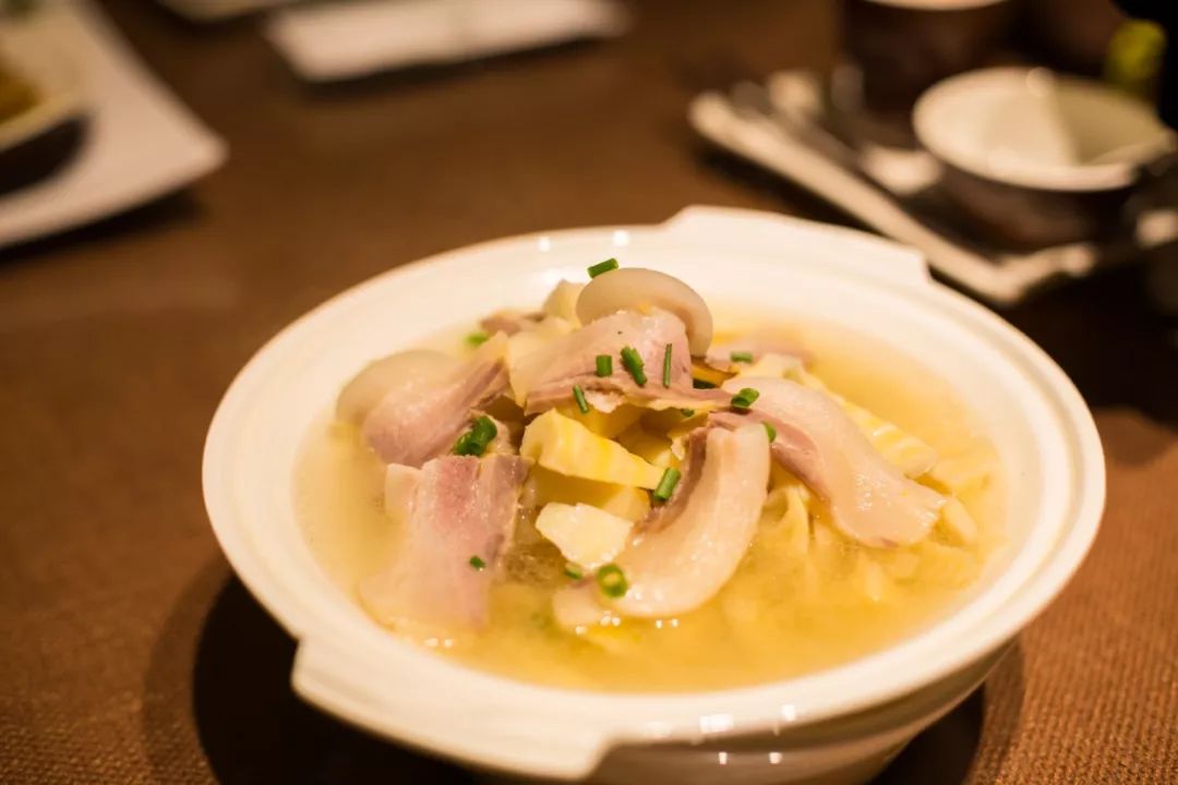 徽州人最爱吃笋,雨后春笋冒出头,徽州人背着竹篓就去不远处的山里挖笋了。清甜的笋拿来炖个汤,在江南的春雨里慢慢喝一口鲜。
