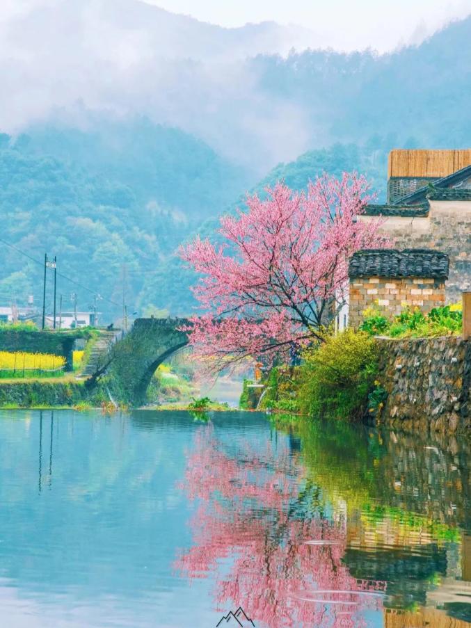 徽州的青山和河流在春天醒来,山中的梨花、桃花、山茶陆陆续续绽放,你走在山中,迎面就能碰到繁花绚烂人眼。