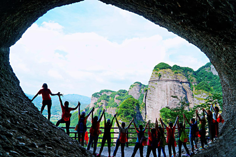 吞天洞 沿将军峰盘绕的一条栈道上,有一处天然形成的洞穴,近距离观望,觉得这里仿佛张开大嘴的吞天蛤蟆,想要把天一口吞吃。